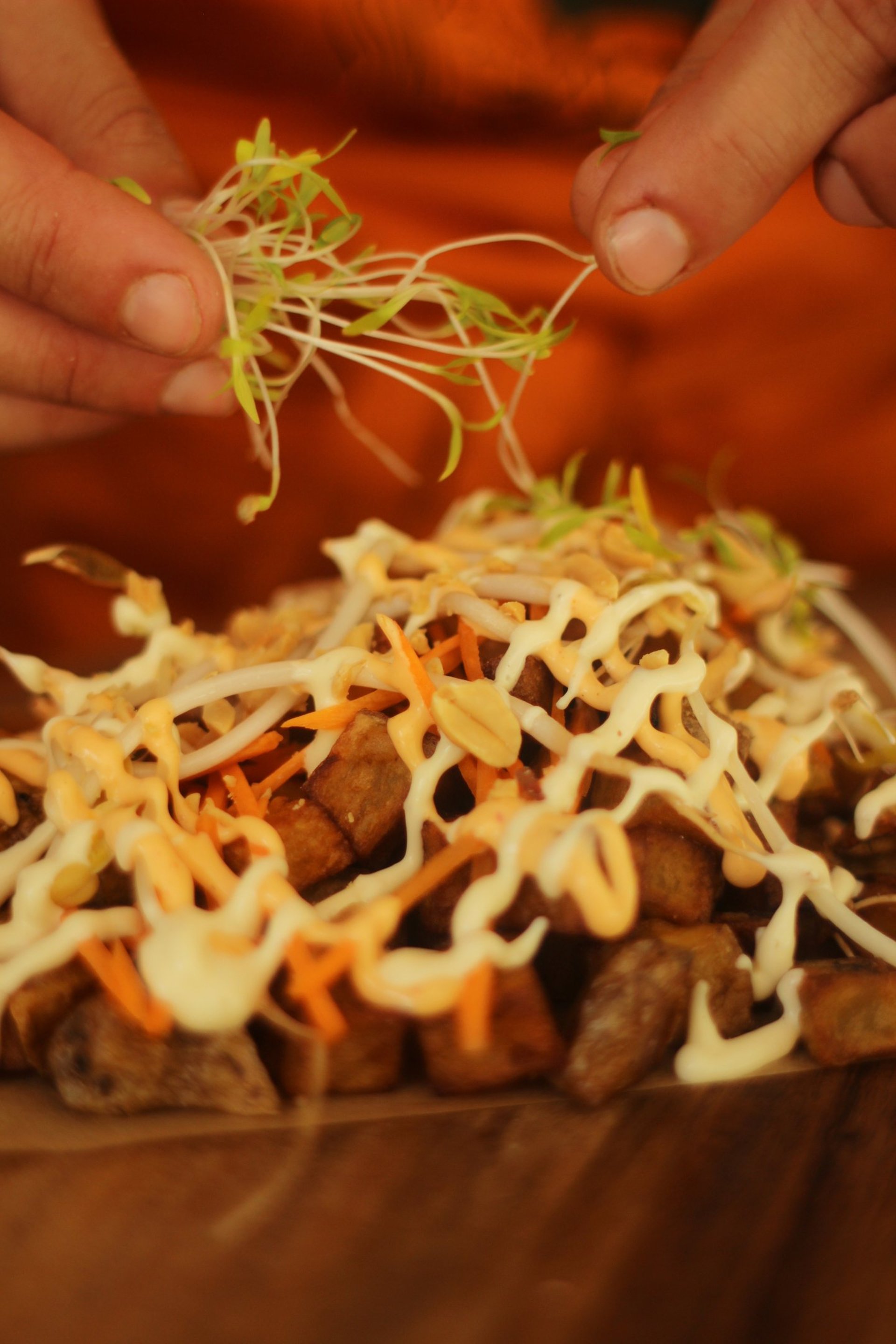 Aujourd'hui, nous proposons une street food 100% faite maison autour de Baos vietnamiens : pains vapeurs maison, sauces, garnitures etc. Nous les déclinons au fil des saisons, avec des viandes confites, marinées ou croustillantes mais aussi avec des options végétariennes.